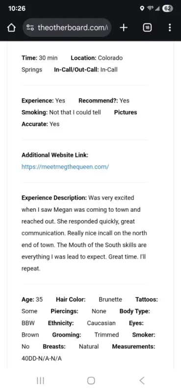 https://theotherboard.com/users/121190 ****OUTcalls REQUIRE deposit*** < @your place > 30 min... 300 hour... 400 2hr... 700 3hr... 900 < @my place > 15 min... 170 lip service only 30 min... 250 Hour ...350 2Hour ... 650 3Hour ... 900 Newbie friendly! I travel for a fee!! I’m Meg, a tall, captivating brunette with stunning blue eyes and a personality that draws you in from the very first glance. My Southern charm and sophisticated presence create the perfect blend of elegance and excitement. Whether you're seeking a stimulating conversation, a luxurious escape, or a little playful adventure, I’m here to deliver. My secret shenanigans are guaranteed to leave you craving more, and I promise an unforgettable experience every time we meet. Let’s take things to the next level—fly me out and let’s explore new pleasures, far from the ordinary. Discretion and an indulgent time await. @MeetMegTheQueen on X
