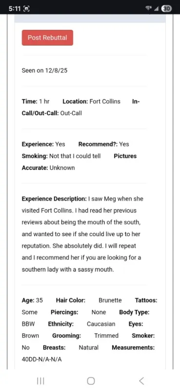 https://theotherboard.com/users/121190 ****OUTcalls REQUIRE deposit*** < @your place > 30 min... 300 hour... 400 2hr... 700 3hr... 900 < @my place > 15 min... 170 lip service only 30 min... 250 Hour ...350 2Hour ... 650 3Hour ... 900 Newbie friendly! I travel for a fee!! I’m Meg, a tall, captivating brunette with stunning blue eyes and a personality that draws you in from the very first glance. My Southern charm and sophisticated presence create the perfect blend of elegance and excitement. Whether you're seeking a stimulating conversation, a luxurious escape, or a little playful adventure, I’m here to deliver. My secret shenanigans are guaranteed to leave you craving more, and I promise an unforgettable experience every time we meet. Let’s take things to the next level—fly me out and let’s explore new pleasures, far from the ordinary. Discretion and an indulgent time await. @MeetMegTheQueen on X